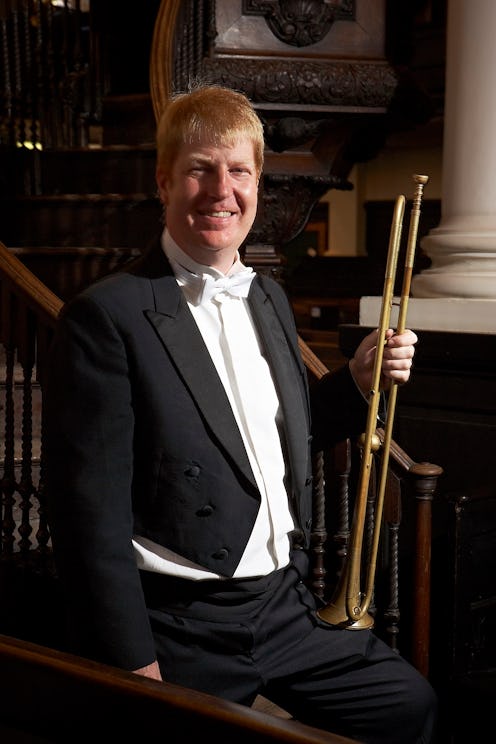 The institution, based in Cambridge, focuses on playing period music with instruments in the style of the time period of the piece. Blackadder is a Baroque trumpeter, which means that he plays music from the Baroque era with a trumpet as it was made in the Baroque era, without valves. According to his Academy of Ancient Music bio, Blackadder played with the Scottish Opera and was the principal trumpeter for English Baroque Soloists and Orchestre Revolutionaire et Romantique. He’s now the principal trumpet player at the Academy of Ancient music, making him the perfect choice to toot his own horn at the royal wedding.