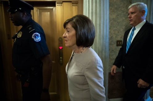 As the senior senator from Maine announced her highly-anticipated vote on Supreme Court nominee Brett Kavanaugh on Friday afternoon, many viewers took note of the two women sitting behind Sen. Susan Collins during her Kavnaugh speech. They are Republican Sens. Shelley Moore Capito and Cindy Hyde-Smith — and their presence behind Collins was conspicuous, because according to some Senate reporters, that's not where either of them normally sit.