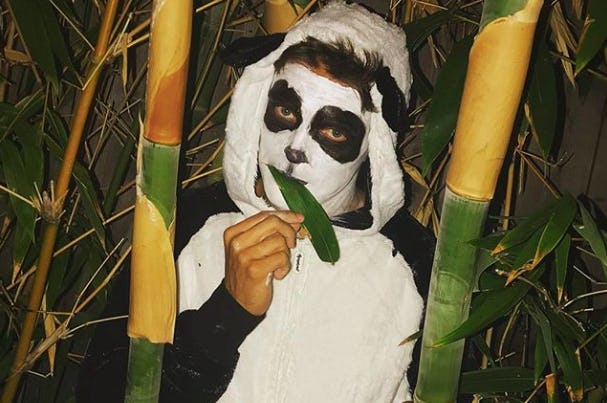 Anyone who follows Dean Unglert on social media knows he has a dog obsession, so it was a safe bet to assume that he would be a puppy for Halloween, but he went a different route. Instead he went all in on being a panda, complete with black and white makeup.