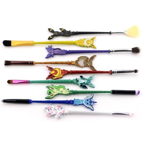 Featuring Eevee and the eight Eeveelutions (Flareon, Vaporeon, Jolteon, Espeon, Umbrion, Leafeon, Glaceon, and Sylveon, in case you're rusty), the brushes come from Etsy user SimbaeShop — and they're pretty much as cute as can be. The set comes with a decent selection as well — comprised mainly of various eye brushes (including a fun fan brush with Umbreon on it, and a precise liner brush with Vaporeon on it). For $42, it's actually a good deal, seeing as you get nine handmade brushes that will basically be the envy of all.