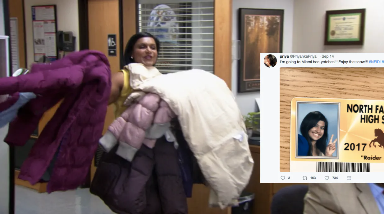 "I knew I wanted to be Kelly," North Farmington Senior Priya told Bustle, "I love her character, and Mindy Kaling, so much." The fact that they live in famously cold Michigan added to the fun, and "the funniest [Kelly] scene by far my friends and I could come up with was the jacket scene."