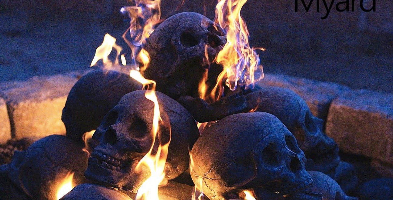 Well, y'all, it may be lights out for Game of Thrones for the next year or two, but that doesn't mean you can't incorporate your passion for the horror of unflinching, medieval violence and Ramsey-level home decor into your regular human existence on the daily. Enter these skull-shaped ceramic fire logs, a totally normal, not at all mentally scarring purchase you can now make on Amazon Prime. The best/worst part is that they're available just in time for Halloween, so you can burn these eerily accurate metaphors for your enemies and be thematically on point.