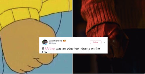 Photographs of the group costume were shared on Twitter by Daniel Nkoola, who added the hashtag #ANightInElwood. As he explained in the caption, the squad went for an "if Arthur was an edgy teen drama on the CW" look, and believe it or not, the result isn't quite as ridiculous as you're probably imagining. (That being said, it's still pretty ridiculous in the best possible way.) As far as characters go, the whole gang is featured: Arthur, his sister D.W. and best friend Buster, Francine, Muffy, the Brain, and Binky. Like always, poor George Lundgren is left out.