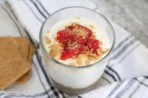 For someone who lives alone, the resulting single-serving cheesecake recipe I cooked up is a game changer. It calls for very few ingredients and even less equipment: Everything is mixed in a small bowl, so you don't even need much space to make the magic happen. And since the finished product is chilled and served in a cup or jar, cleaning up the kitchen is a breeze. I'd call that a win. Even better, this no-bake cheesecake recipe calls for zero oven time, so even if you're not the most adept baker, you'll be able to master it in no time.
