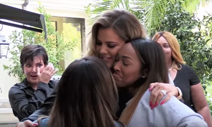 The midseason finale of Keeping Up With the Kardashians Season 14 airs this Sunday, but a new preview for the second half of the season might reveal that Khloé Kardashian will confirm her pregnancy on the show. In a trailer for the second half of the season, which will begin on Sunday, Jan. 7 at 9 p.m. a lot goes down, but what stands out most comes at the end. During what appears to be a party for family and close friends, everyone gasps and says "What?!" Then, Kris Jenner says that she didn't know something unspecified when Kim Kardashian asks, "Did you not know?" After that, Kris, as well as Khloé's friends Malika and Khadijah Haqq are shown crying. Could it be because she just told everyone at once that she's pregnant?