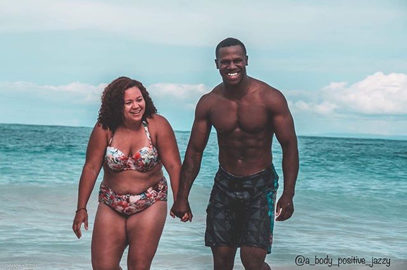 Jazzy is an aspiring plus-size model, wife, mom, and body-positive activist. She recently shared a photo on her Instagram page — with an impressive following of nearly 30,000 people at the time of this article — of her and her husband walking along the beach holding hands. It's a beautiful image that will make a great memory down the road; but it's likely Jazzy's touching words that explain the more than 60,000 likes the image has received. In it, Jazzy gives a shout-out to her husband, who has always loved every inch of her body — even when she didn't. While they have two very different body shapes, what matters more than anything is the love between them. It's a refreshing reminder on a platform saturated with images of women setting impossible standards — incredibly thin with large posteriors, perfect brows, flawless skin, and plump lips.