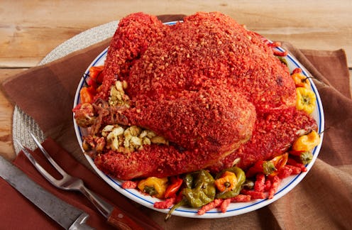 We've all seen our fair share of weird and whacky recipes on the internet — you know, the kinds of things that look like jokes, but aren't. From sushi burritos to pumpkin spice bagels, it's hard to be fazed by any food combinations these days. Like, we've seen it all, haven't we? Wrong. On Thursday morning, a local Memphis, Tennessee news station published a Flamin' Hot Cheetos turkey recipe first posted on the Reynolds Kitchens website, and it doubled as an official mic drop on all internet food mashups to date. And yeah, it made a lot of jaws drop.