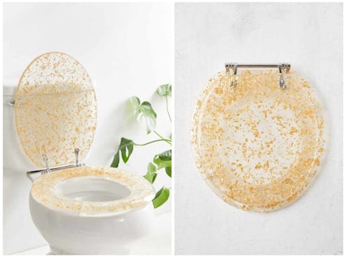 Urban Outfitters’ delightfully extra toilet seat begins with something simple — clear plastic — and bumps it up a notch with a “gold-flecked design and hinging structure,” according to the product listing. Hardware is included, too, making the seat a cinch to install. It comes in two sizes, small and large; the small one will set you back $69, while the large one costs $10 more at $79.