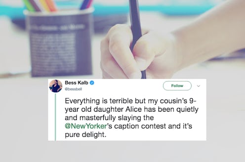 The art of the cartoon caption is no easy feat. Captions need to be quick and pithy, and slice through the heart of the cartoon without using bad puns and stale jokes as a crutch. But one nine-year-old girl has so far proved to be a real maven when it comes to cartoon captioning; she went viral after a family member tweeted her New Yorker caption contest submissions, with fans noting she's way better at captioning than some of her much older counterparts. Like, myself, who has never written a New Yorker caption she doesn't want to light aflame and then bury underground, but who's bitter, not me!