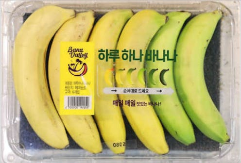 Thanks to Twitter user and blogger @AskAKorean, we now know the true and correct way all bananas should be sold: in a handy six-pack with varying stages of ripeness. @AskAKorean shared a photo of the “haru hana banana” (also known as “one-a-day bananas”) that are being sold at E-Mart, a grocery store chain in Korea. Per Daum, the Korean website that initially tipped off @AskAKorean, each pack comes with six bananas, ranging in ripeness from yellow and ready-to-eat to green and “will be ripe by the time you get around to it later this week.” No longer must our bananas face their inevitable fate of becoming delicious banana bread. (I mean, I love and cherish a good banana bread, but I want the option to eat a banana when it’s still ripe, you know?)
