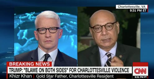 On Tuesday evening during an interview on CNN, Khizr Khan condemned President Trump's remarks about white supremacist violence in Charlottesville, VA. Khan is a resident of Charlottesville, and witnessed the violence and hate speech first-hand. But he is also the father of a fallen U.S. soldier, and what pained him the most about the "Unite The Right" rally was that the U.S. flag, which his son gave his life to defend, was being displayed right next to symbols of hate.