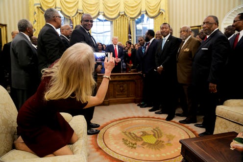 While climbing on a couch in the Oval Office to capture a photo may or may not be acceptable, it does seem pretty clear that Conway did so in order to capture a photo of everyone in the room. At least, you can only hope she wasn't casually checking her phone while Trump met with the HBCU heads.