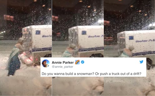 This Video Of A Man Dressed As Elsa Shoving A Boston Police Wagon Out Of The Snow Is EVERYTHING