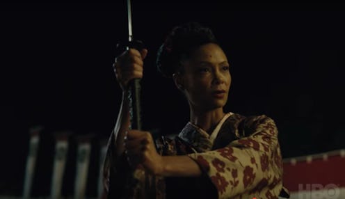 Although the Samurai park was teased in Season 1, fans perhaps didn't know Maeve would be such a huge part of it. (But maybe they should've since she was the one to first discover the Samurai hosts.) In the Season 1 finale, at the start of the revolution, Maeve and Hector forced Westworld workers to show them around the control center. There, Maeve sees frozen Samurai hosts with a nearby symbol, the same one that's used by the army in the new teaser. She also sees two Samurai hosts sword fighting.