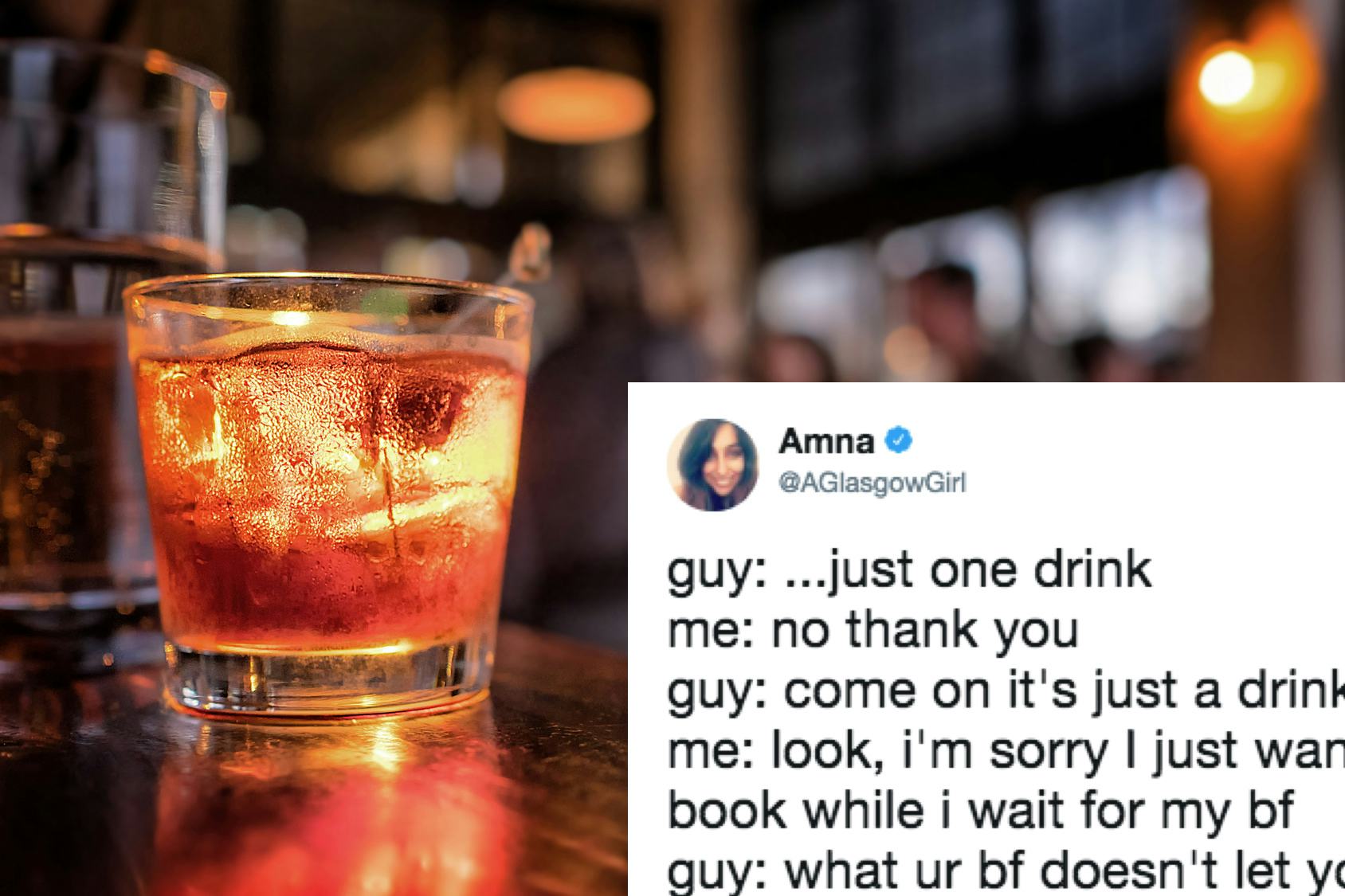 In addition to to getting thousands of retweets and likes, many people commented on Saleem’s experience. One Twitter user described a similar experience where a woman came up to her asking her to pretend to know her because she was hiding from a guy in the bar. “Best believe I acted like we were besties since birth. #girlcode,” @Val_Marieee wrote.