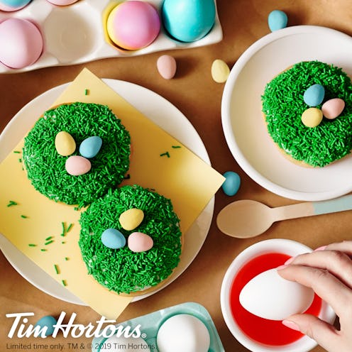 Tim Hortons is as famous for its coffee as it is for its donuts — and it's easy to imagine celebrating an April morning with a coffee in one hand and a dozen of these donuts balanced in the other. Sometimes the brand takes a little bit of a leap into unknown territory (the Buffalo sauce latte, anyone?), but this donut is an easy home run. Just like it did with its hugely successful Nutella donuts, these Easter treats focus on simple, rich favorites and delivers what Tim Hortons already know you want — chocolate, sprinkles, and donuts. Lather, rinse, repeat.