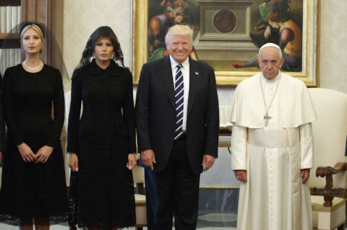 A photographer snapped the shot when the pope welcomed Trump and his entourage for their audience. It shows Trump in the middle flashing his trademark grin, with a dour-looking Pope Francis to his left and a seemingly exasperated Melania to his right. Next to Melania is Ivanka Trump, who looks like she put some thought into how one is supposed to appear when meeting with the Pope, and then held that expression. Both women, following Vatican protocol, are wearing modest black dresses with head veils — which has also drawn attention. What's most obvious, though, is how absolutely unimpressed the pope seems with the situation that the American people landed him in. On the bright side, however, the internet has done some wonderful things with it.
