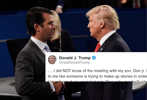 "No, I did NOT know of the meeting with my son, Don jr.," Trump wrote in a three-part Twitter message Friday. "Sounds to me like someone is trying to make up stories in order to get himself out of an unrelated jam (Taxi cabs maybe?)."