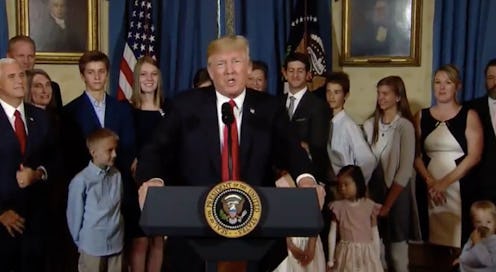 On Monday, Donald Trump issued a scathing statement on the Affordable Care Act from the White House. A video of Trump showed the president standing in front of a group of people as he urged Senate Republicans to commit to the party's demand of replacing and repealing Obamacare. The video has garnered a lot of attention on Twitter, with some saying the audience standing behind him proves that Trump only cares about white America's health care.