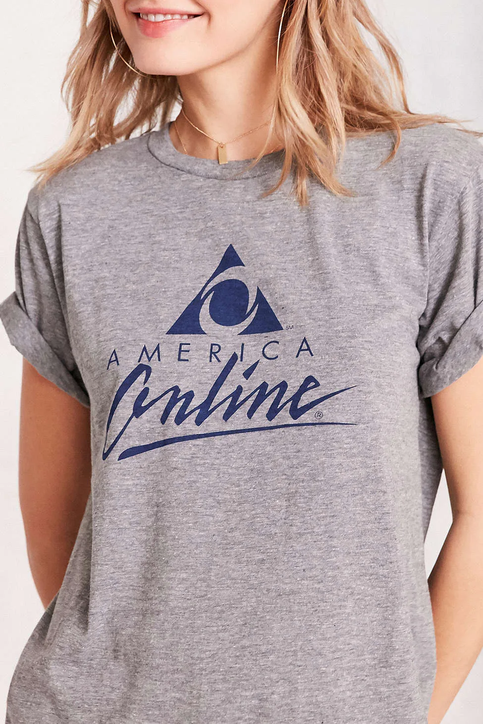 Right about now would be a great time to start digging in the back of your closet. Screen names and a dial-up connection just got cool again, but this time you'll be wearing a nod to the days of web culture gone by instead of waiting forever for your internet to connect. Urban Outfitters is selling an AOL shirt that will bring back the memories of days before WiFi. The tee was designed by Altru Apparel and has the triangle-shaped AOL symbol with the words "American Online" on it. The crew neck and rolled-up sleeves will take you right back to the good 'ole days.