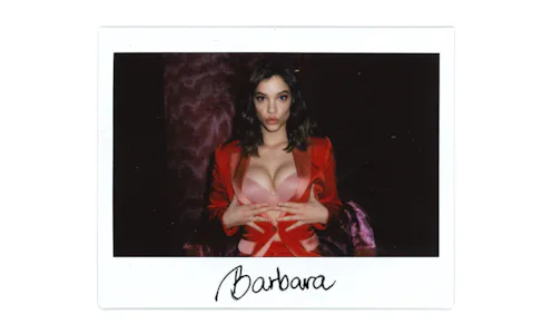 Barbara Palvin is very good at being a Victoria's Secret Angel. For the launch event celebrating the brand's new Incredible Bra, she somehow makes a nude version of the style the focal point of her outfit, despite it being layered under a bright pink and orange suit that has shoulder pads and flared pants. She insists "it is the most comfortable bra I ever wore." She mentions the bra's official hashtag (#IncredibleEveryDay) at least five times during our interview. Barbara Palvin was born for this job.