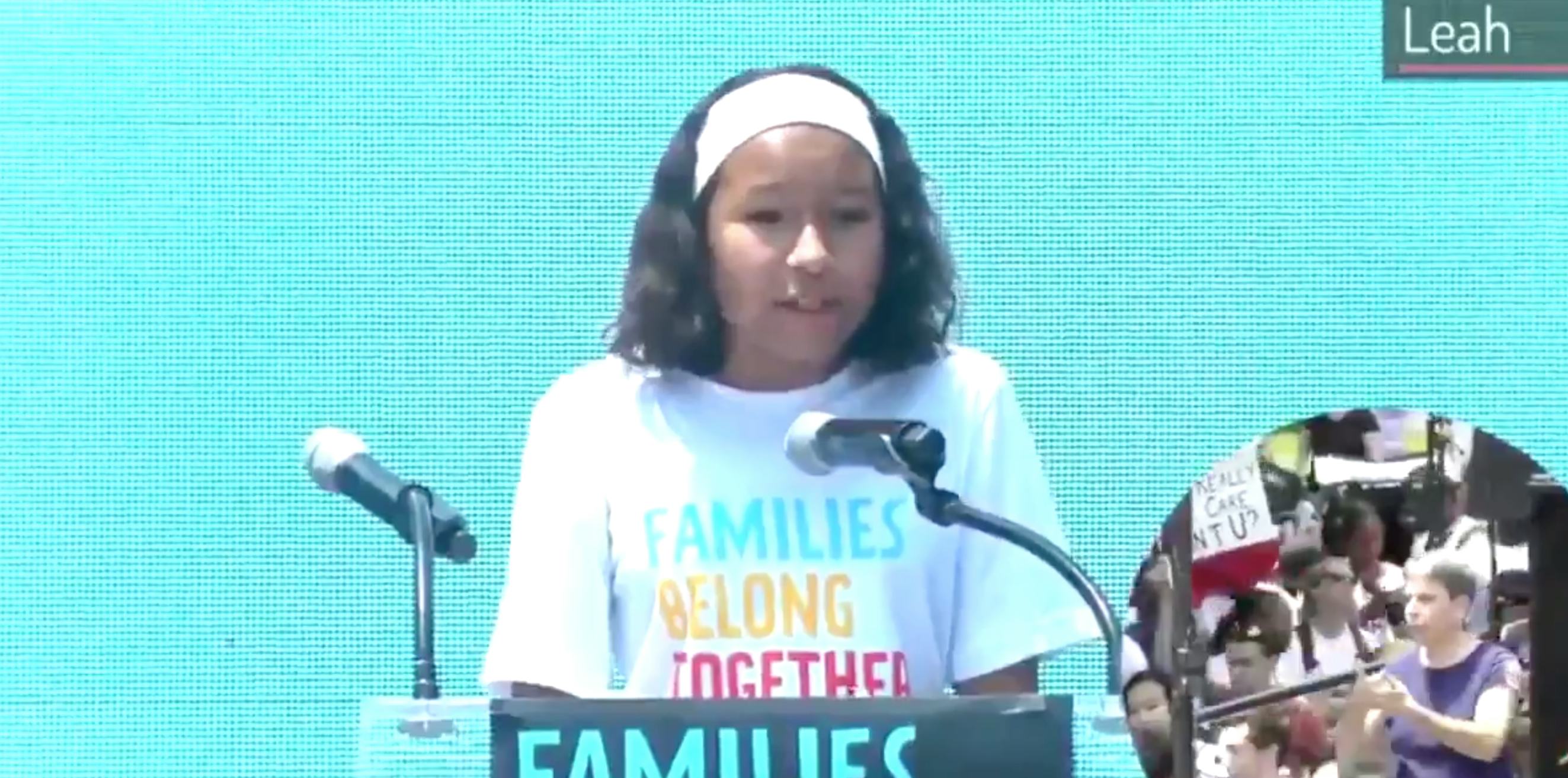On Saturday, a 12-year-old girl named Leah gave a speech at the Families Belong Together march in Washington, D.C., about the constant fear she lives in as a daughter of immigrants. Leah, who frequently tweets about her immigration reform activism, also condemned the family separations at the border and the cages detained children are living in.