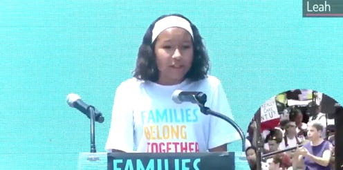 "I am here today because the government is separating and detaining refugee parents at the border who are looking for safety. Our government also continues to separate U.S. citizen children like me from their parents every day. This is evil! It needs to stop!" Leah told a raptured audience at Saturday's march. "It makes me sad to know that children can't be with their parents. I don't understand why they're being so mean to us children. Don't they know how much we love our family? Don't they have a family too? Why don't they care about us children?"