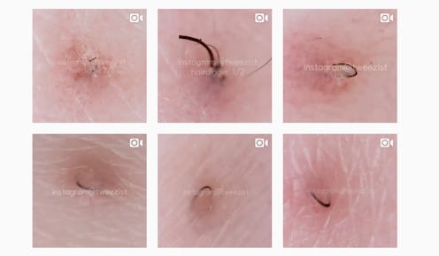 Warning: This content may be so disgusting that it makes your stomach churn. Or it just might be so horribly satisfying that you're forced to explain why it brings you pleasure. Prepare to be grossed out by the Tweezist Instagram account, which shows ingrown hair extractions and nothing else. Amassing over 16,000 followers and counting, it's practically the new Dr. Pimple Popper.