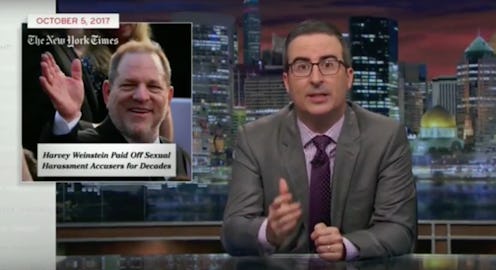 As The Daily Beast reported, Oliver is the first late night comedian to address the Weinstein allegations in-depth on his show . The outlet also reported last week that a myriad of late night hosts, including Jimmy Kimmel, Jimmy Fallon, Seth Meyers, James Corden, and Stephen Colbert, did not discuss the allegations against the film executive on their shows, despite having previously reported extensively on sexual harassment allegations against conservative media figures like Fox News chief Roger Ailes and Fox News Host Bill O'Reilly. Only Trevor Noah of The Daily Show very briefly mentioned the allegations on his show last week.