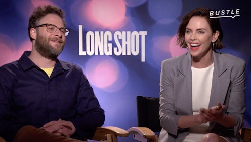 Charlize Theron and Seth Rogen's new rom-com Long Shot (in theaters May 3) is the unlikely — yet also very realistic and relatable — love story of two extremely different people who still somehow click. It involves a childhood crush, a lot of partying, and a presidential race, which lights a spark between candidate Charlotte Field (Theron) and journalist-turned-speechwriter Fred Flarsky (Rogen). At the movie's Los Angeles press junket, Bustle's Associate Entertainment Editor Mallory Carra decided to put the film's stars and director Jonathan Levine to the test to improve on some of the greatest speeches in history — both real and fictional.