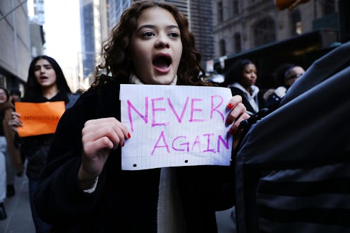 In different cities across the United States, students plan to step out on March 24 for the the anti-gun violence March For Our Lives protest. "Never Again" appears to be their rallying cry as youth activists keep the pressure on local politicians to support and pass sensible gun laws in order to reduce gun violence in the country. So, what exactly does "Never Again" mean in this context and how did it start? The chant, which has come to represent a national movement, was started by survivors of the school shooting in Parkland, Florida.