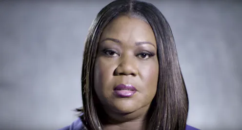 Fulton goes on to speak about their "lies about immigrants and people of color to divide us." But the biggest part of her argument is about Carry Guard: She contends that the NRA spends millions to lobby for laws that allow them to "stand their ground." "But that just makes it easier to get away with murder," she says. "Now they're selling insurance that covers the cost."