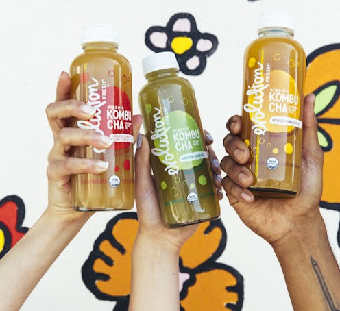 At this point, you've almost definitely heard of kombucha, a drink that has been super trendy in the health food world for a while now. The mixture of fermented tea is said to have health benefits that include improved digestion, less stress, and more energy. Once only relegated to health food shops, kombucha has grown in popularity so much that it's now available pretty much everywhere by a whole bunch of different brands. And starting Aug. 8, Starbucks' Evolution Fresh line is selling a variety of flavors of kombucha. Before you buy one to test out, however, you might be wondering exactly what Starbucks' Evolution Fresh Kombucha is.