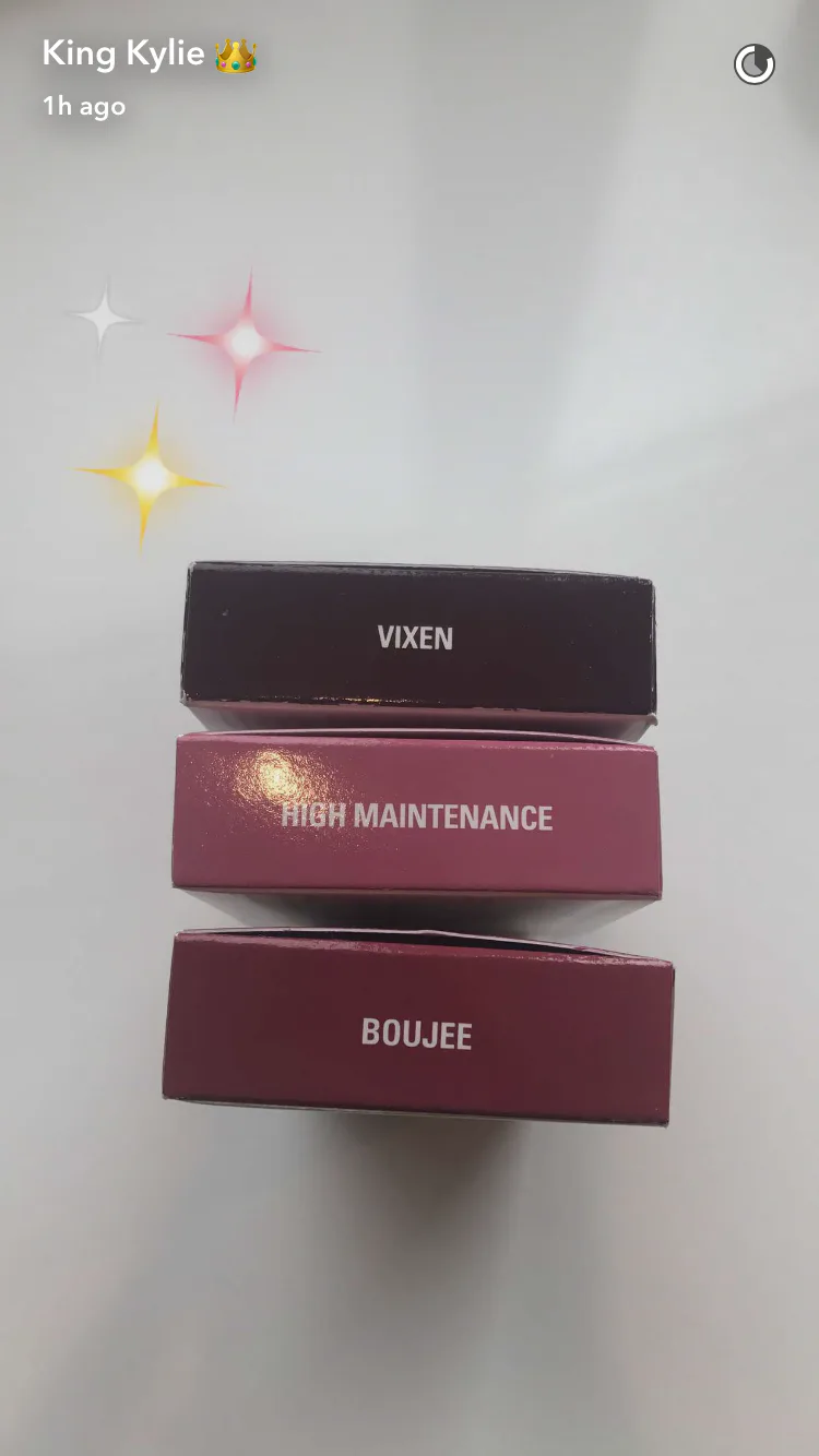 There's a catch though, because you've seen these Kylie Lip Kit shades before. As announced on her Snapchat account, Jenner's answering your pleas, as these three lippies are coming from previous collections, now to join the ranks of your absolute faves. There's the dark, sexy Vixen from the Holiday collection, the light pink High Maintenance from the Valentine's Day collection, and berry shade Boujee, which was originally named Mary in the Holiday collection, but to avoid confusion from red lippie Mary Jo, Jenner changed the name.