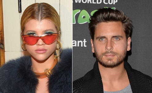 The premiere of Season 14 of Keeping Up with The Kardashians is just around the corner, and fans of the reality show are in a fever pitch about about what's currently going on with the famous family. On Saturday, Kourtney Kardashian's ex Scott Disick and Sofia Richie got everyone talking they shared photos that seemed to confirm that they are dating. There were also photos circulating of the pair at a restaurant with friends in front of a plated dessert that wished Disick and Richie "congratulations" written in chocolate. But the message is confusing — what exactly were Disick and Richie celebrating? Well, there are a number of potential options. (Bustle reached out to reps for Disick and Richie about the dessert message, but did not receive a response.)