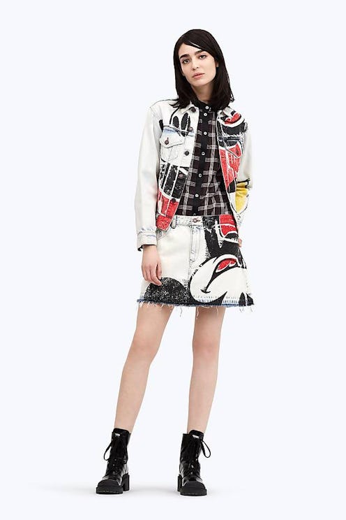 The collection celebrates Mickey Mouse's 90th birthday and also includes an oversized hoodie, a denim mini, and a denim jacket. It's only four pieces but they are all primo.