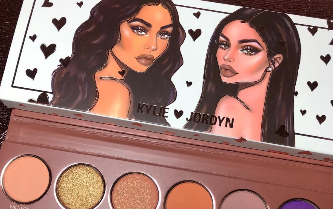 The shadow palette has such a vast array of colors you may not have been expecting or have thought to pair. Have at it, though. It's Kylie and Jordyn-approved.