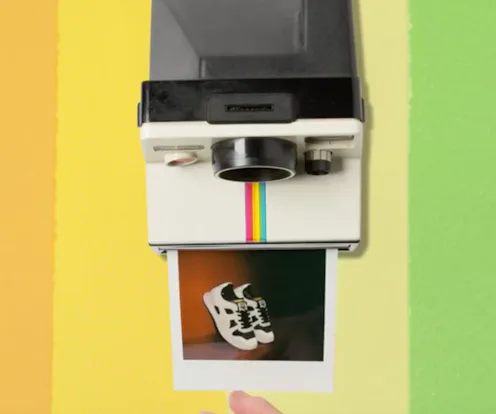 These might be the most Instagrammable sneakers ever! How's that for a dose of irony?! Polaroid posted the news of the collab with this quick clip demonstrating how their old school cameras worked. It's so vintage. Or "classic." See how the camera pushed out the shot? It’s the IRL equivalent of hitting the share button in your Insta app.