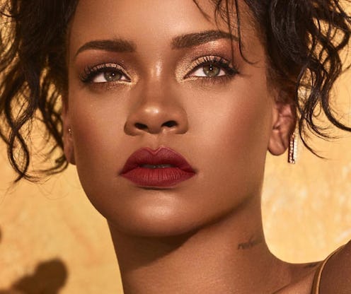 The brand teased the product on its official Instagram weekend over the weekend. A campaign pic of Rihanna rocking shimmery, golden 'n' bronzed lids and brow bones, bronzed 'n' flushed cheeks, and softly matte cranberry lips appeared on the Insta feed. The brand simply noted we should expect to be spicing up our makeup lives as of Friday, July 6.