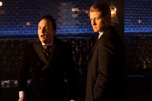 Stephens also teased a big shift for Jim Gordon and Bruce Wayne's relationship after the mob war comes to a head. He told DC All Access, "we have Jim Gordon and a masked Bruce Wayne going head to head" once Jim realizes that there's a masked vigilante roaming the streets. Right now, Bruce has seemingly lost his way, but it seems the hard-partying teen will once again take to the streets with his new alias and start fighting crime — whether he'll be fighting Penguin's goons, Sofia Falcone's goons, or some new threat is still to be determined. And the war between these factions and Jim's police department is also something to look out for as a possible post-break storyline.