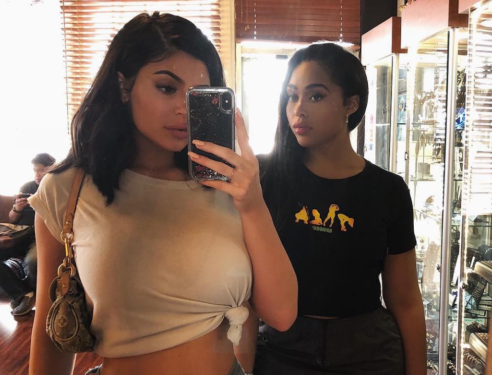 After months of teases and what feels like years of fans and customers clamoring for a collab between these makeup-loving besties, Kylie Jenner shared a sneak peek of the Kylie Cosmetics x Jordyn Woods makeup collection. Jenner posted a behind-the-scenes Instagram shot from the campaign photo shoot for the collection that she and her BFF have been working on and OMFG! This one is going to slay all the live long day.