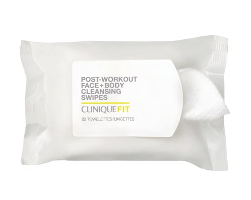 The CliniqueFit Post-Workout Face + Body Cleansing Swipes will wipe any excess dirt, oil, and debris that congregates on your face while you are working out or engaging in other activities. They also exfoliate. If you are multi-tasking, your face wipes should follow suit.