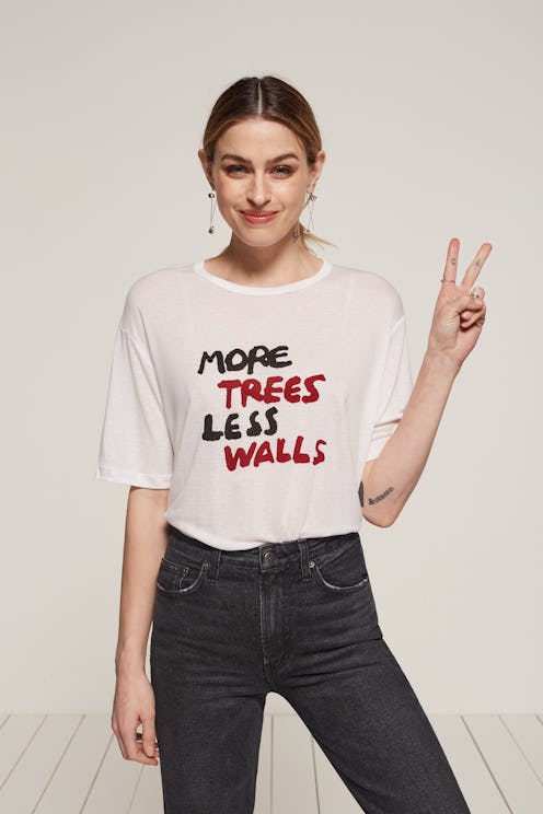 The new Reformation Action Tees feature slogans such as "More Trees, Less Walls" and "My Meow My Choice." Part of each tee's retail value will go directly to one of three organizations: Planned Parenthood, Environmental Defense Fund, and the American Civil Liberties Union. The shirts retail for $50, and $30 of that cost will go back to one of those amazing organizations.