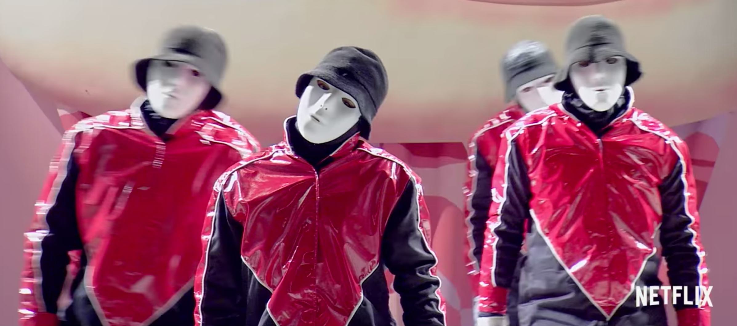 The trailer shows a set of familiar faces, including John Legend and the aforementioned masked men who look a lot like the breakdancers fans may know and love as the Jabbawockeez. Not only did the masks give it away, but the leather coats registered as well. The coats resemble — if not are identical to — the ones they wore at the American Music Awards in 2013.
