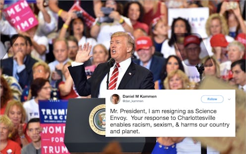 "Mr. President, I am resigning as Science Envoy," Kammen tweeted on Wednesday, including an image of his resignation letter. "Your response to Charlottesville enables racism, sexism, & harms our country and planet." In the course of seven paragraphs, the letter lays out exactly why Kammen feels he can't continue in the Trump administration, the bulk of the issue being about Trump's widely criticized response to white supremacist protest and violence in Charlottesville, Virginia two weeks ago.