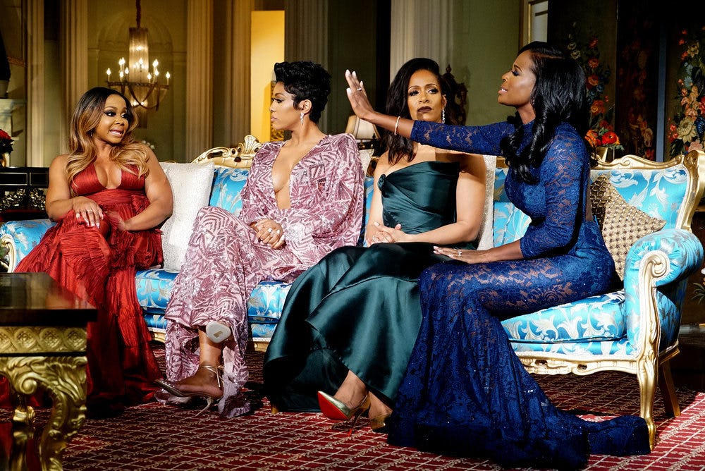 But in just half an episode so far, Shamea managed to totally take control of the situation. Not only was she able to work an apology out of Porsha, she also got into it with Phaedra and came out of a tangle with the Queen of Shade with her wig and her pride in tact. She also pointed out a core hypocrisy in Phaedra's rumor-spreading: if a close friendship is enough evidence to speculate on a sexual relationship, then should audiences speculate about Phaedra and Porsha? Or Phaedra and Kandi, when they were super close best friends? Of course, Phaedra denies that there was anything between her and her BFFs, but that simple point really takes the wind out of any "word on the street" (which, unsurprisingly, no one else has heard) that she's citing as evidence.