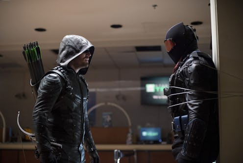 Arrow Season 5 keeps throwing out new questions and adding more mysterious characters that keep the audience guessing about what exactly is going on. One such question that seems to be getting more important is, who is Vigilante on Arrow? The CW series is accumulating quite the roster of unidentified characters, but fans have some pretty definitive theories about who the recently revealed masked foe might be when he's not covering his face and threatening the Green Arrow. First of all, a reminder — Vigilante is different from Prometheus, who also wears a mask. But from the clues doled out so far, Prometheus is probably a figure from Oliver Queen's past.