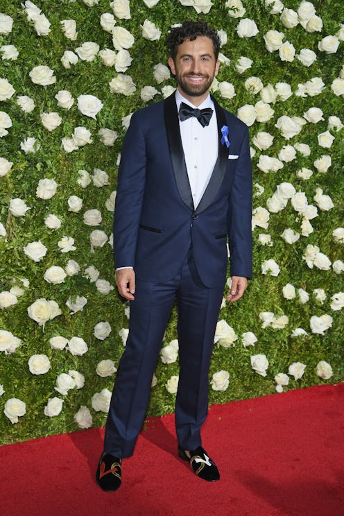 Dear Evan Hansen's Mike Faist blue ribbon not only made a statement but looks amazing on his velvet jacket.