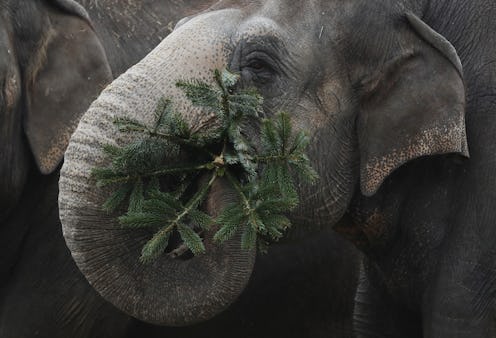 That's where Christmas tree donations come in. On its blog, the Elephant Sanctuary explains that these trees "provide enrichment and supplement the elephants’ decreased foraging opportunities during the winter months." Although they don't normally eat conifers, the trees are totally safe for them to consume, and the smell seems to attract them. Elephants deserve Christmas presents too — and it doesn't hurt that watching an elephant snack on a Christmas tree is strangely adorable. Behold.