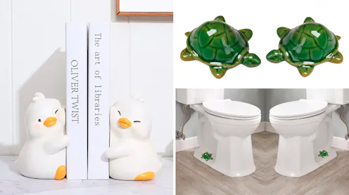 Make your bathroom a little weirder (and more fun) with this pair of ceramic bolt caps shaped like tiny turtles. They fit most standard shapes and sizes of bolts and come in a few different styles (including fish and mushrooms) in the listing.